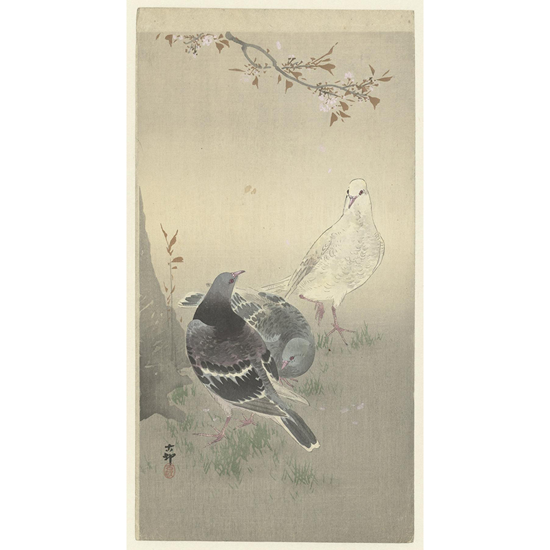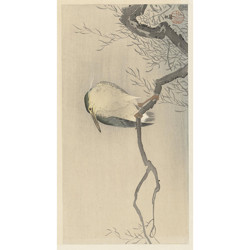 Magpie on tree branch (1900 - 1910) - 小原古邨