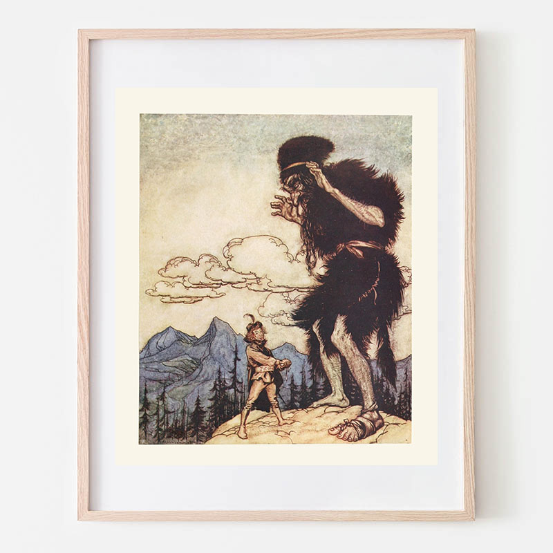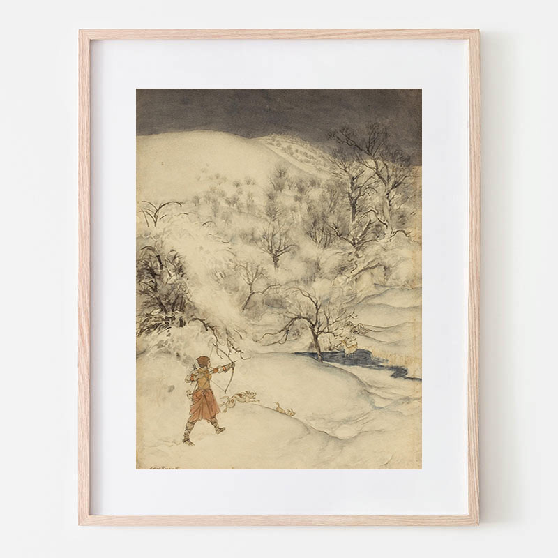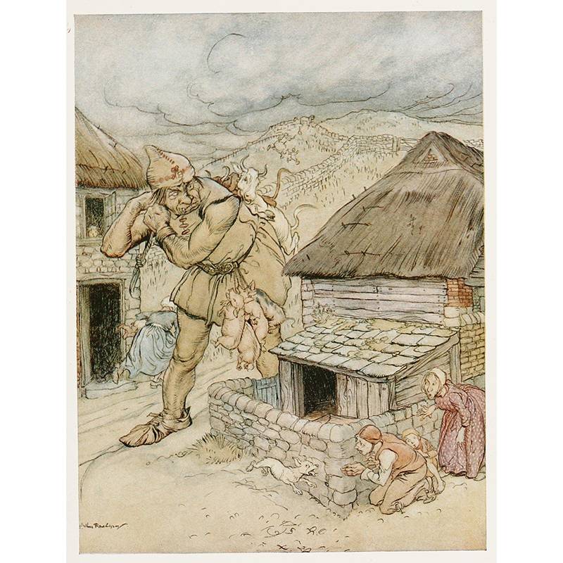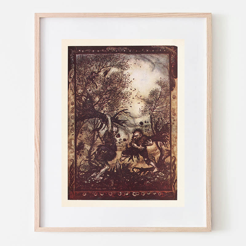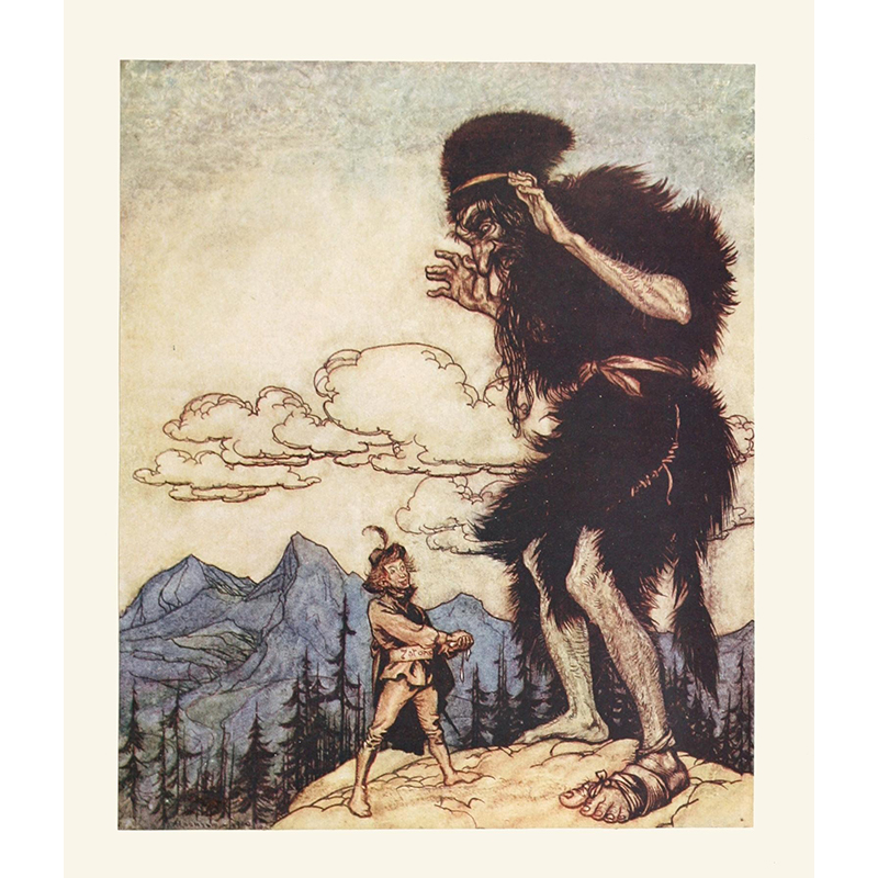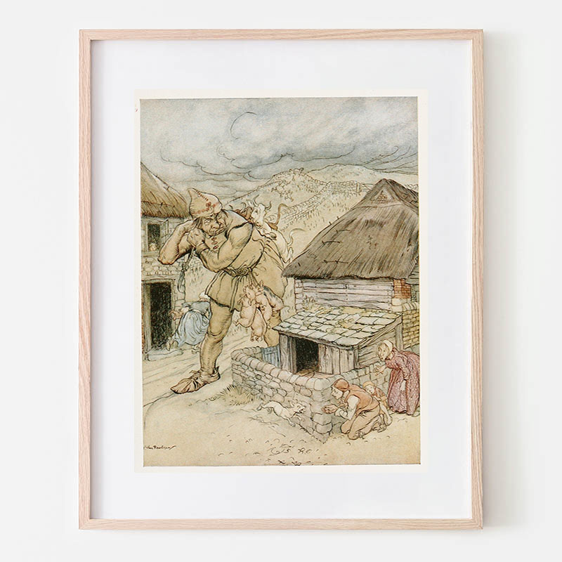 Hansel picked up the glittering white pebbles and filled his pockets with them (1920) - アーサー・ラッカム