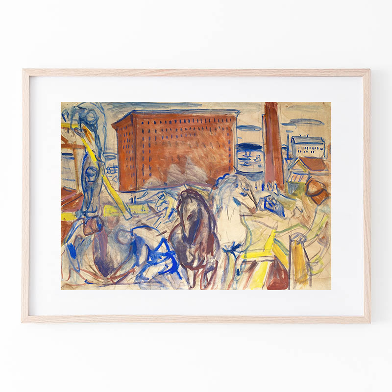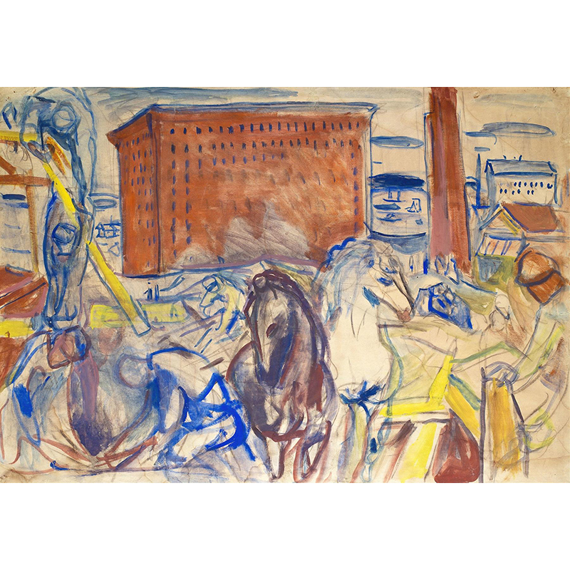Horse Team on a Building Site (1928-1929) - エドヴァルド・ムンク