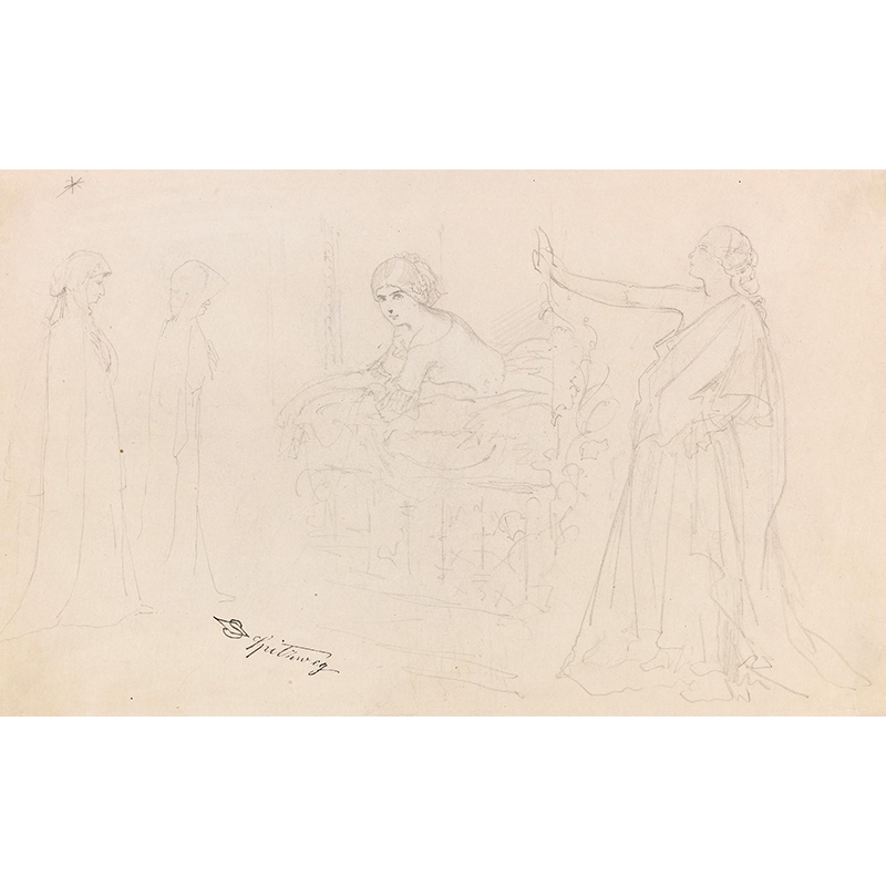 Figurenstudien; Eremit, Junge Frau am Fenster, Allegorie (1840) - カール・シュピッツヴェーク