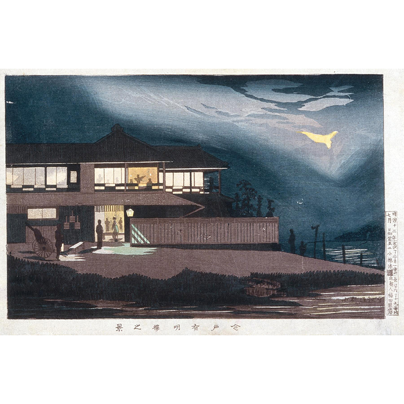 View of Houses of Entertainment in Imado at Dawn (1879) - 小林清親