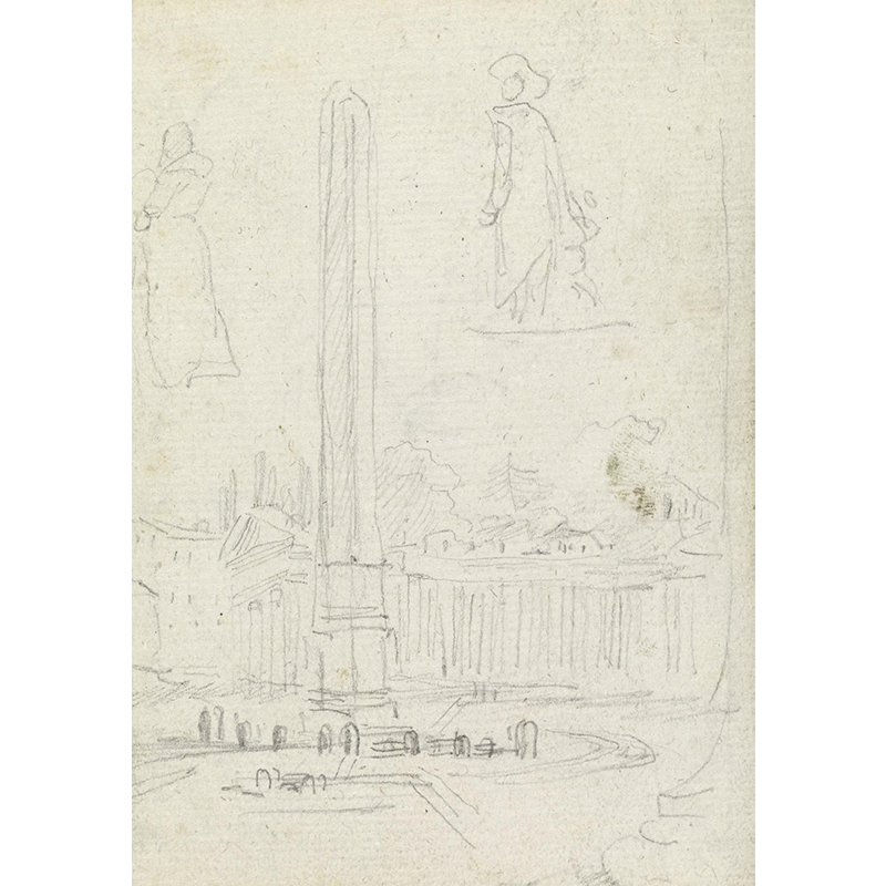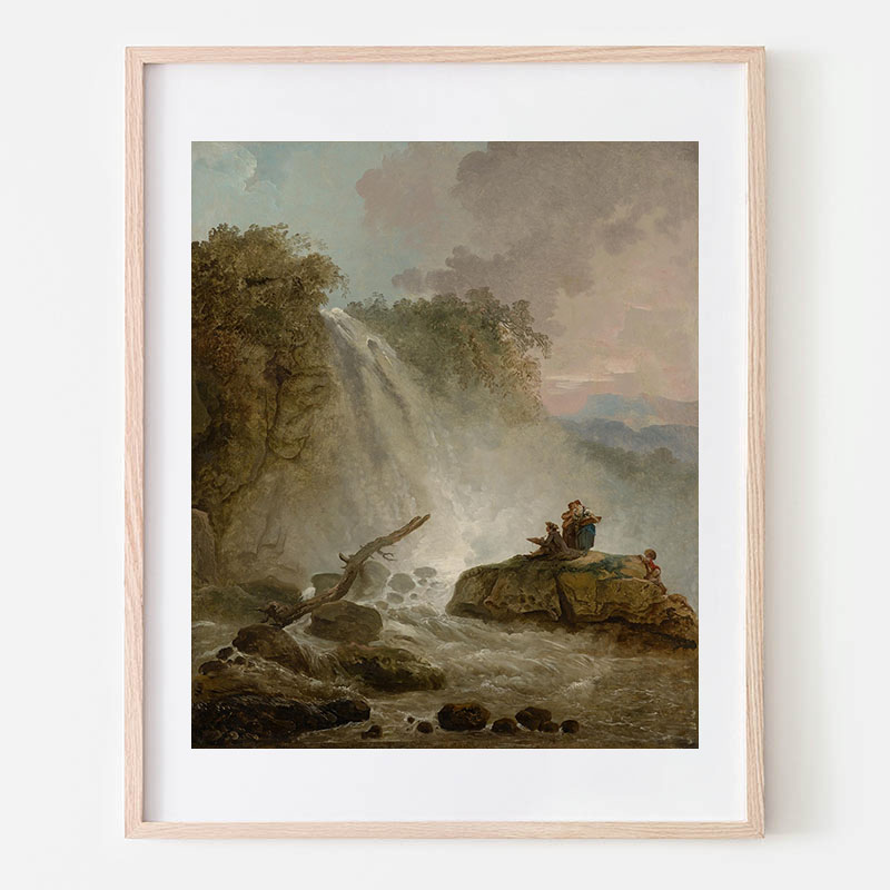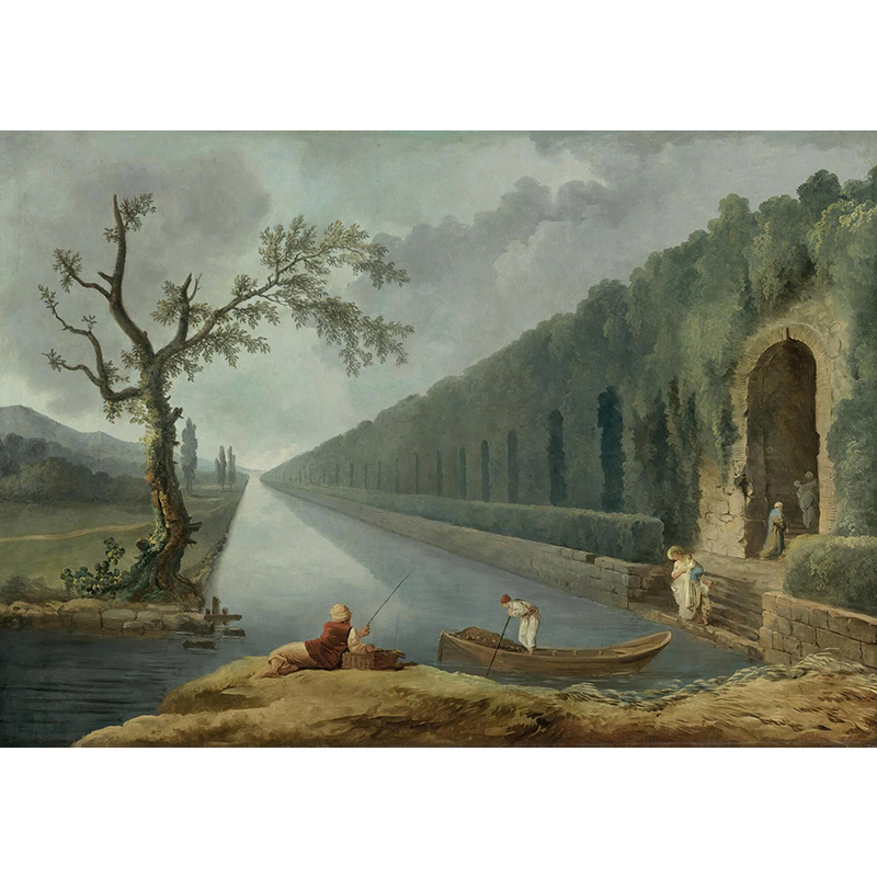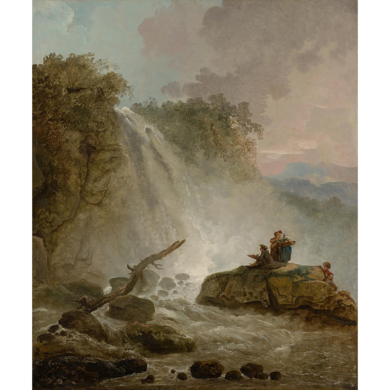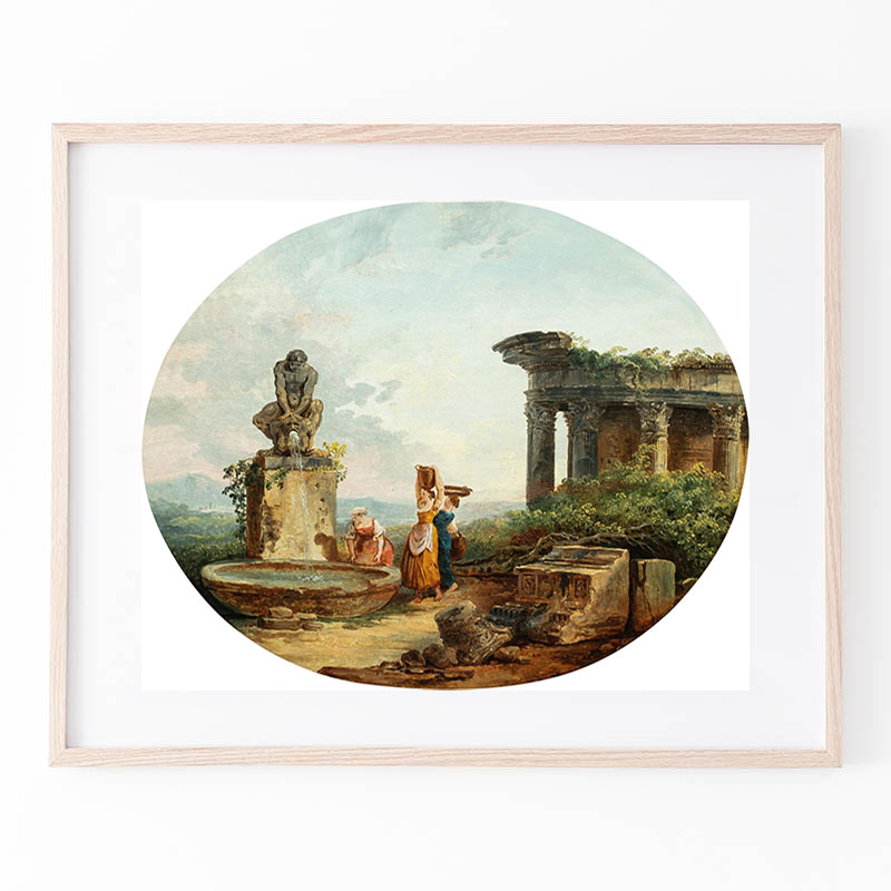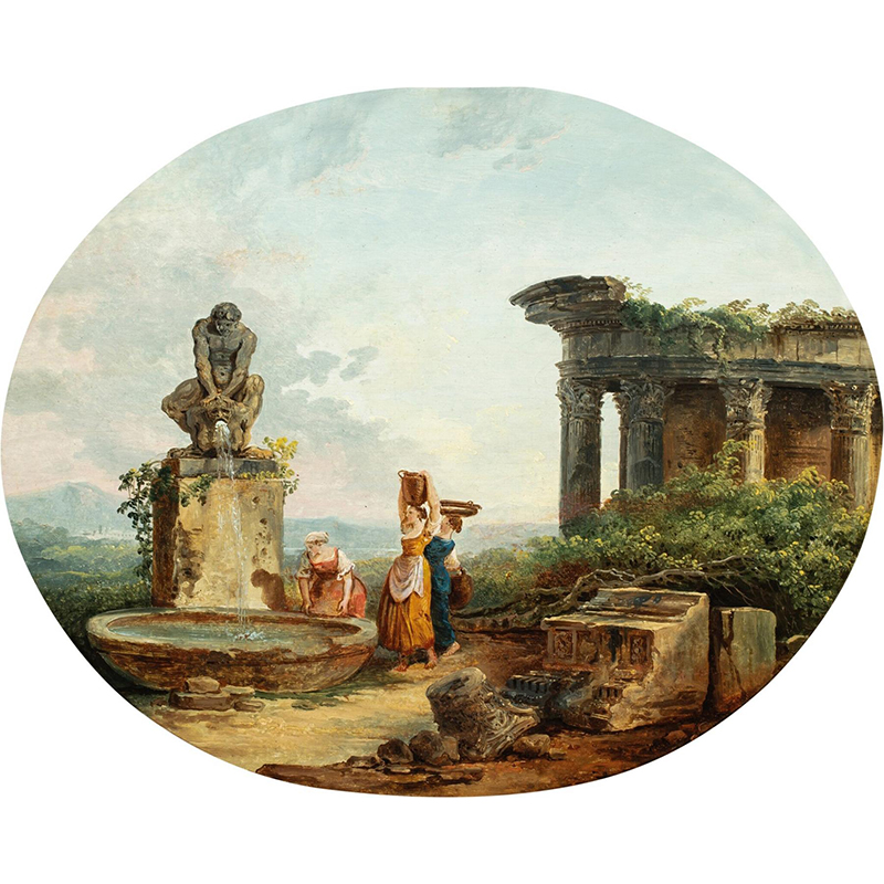 Landscape with washerwomen at a fountain - ユベール・ロベール