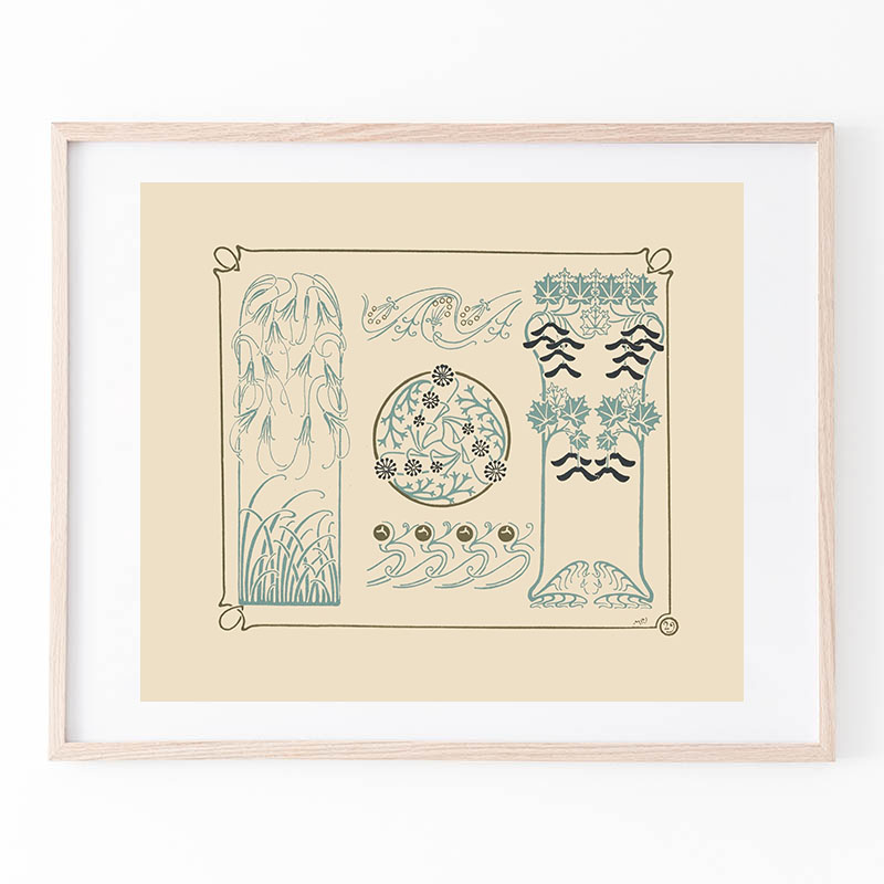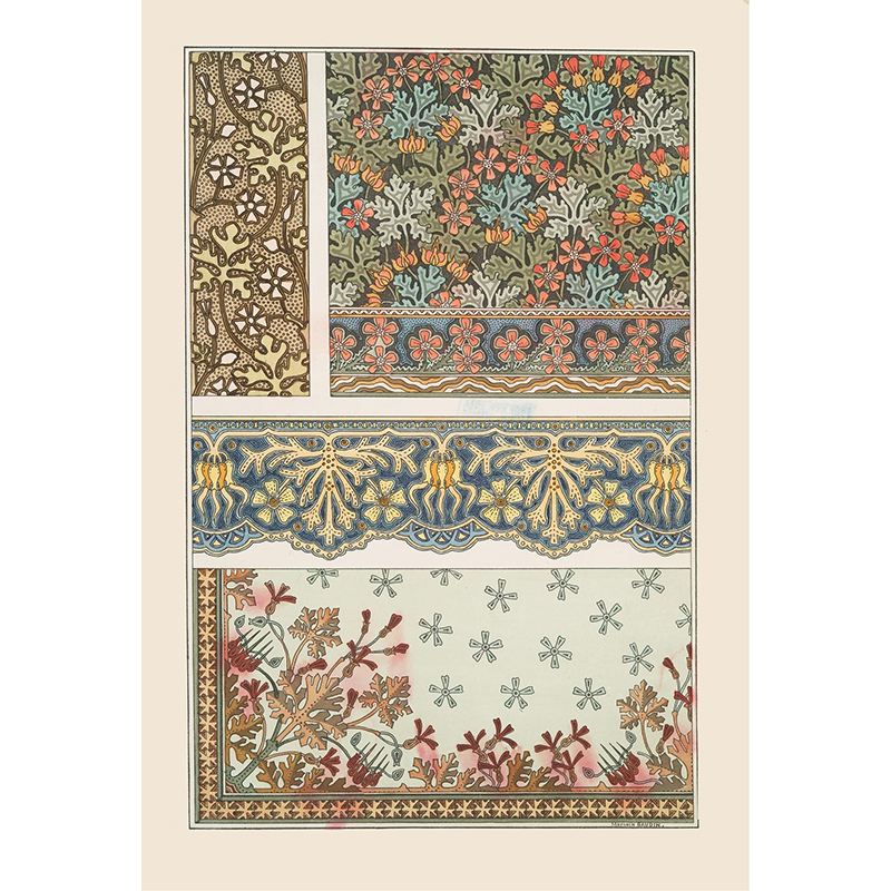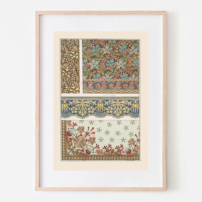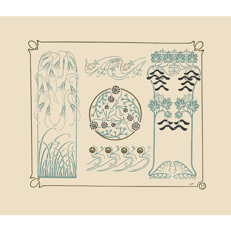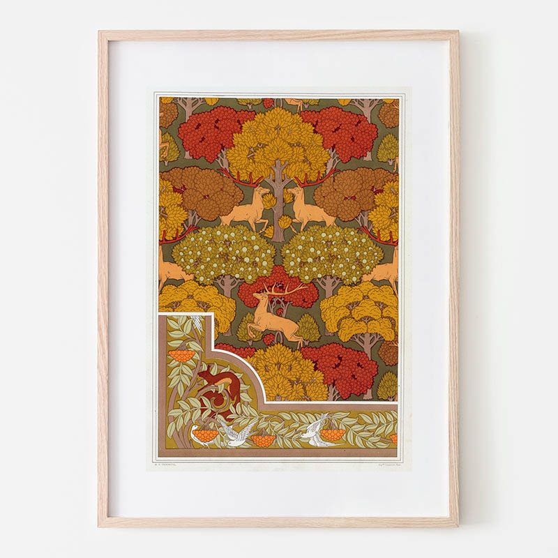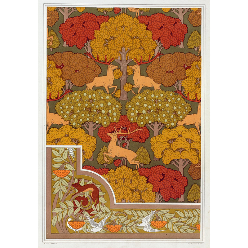 Cerfs et arbres, papier peint. Écureuil oiseaux et sorbier, bordure. (1897) - モーリス・ピヤール・ベルヌーイ