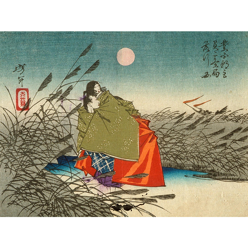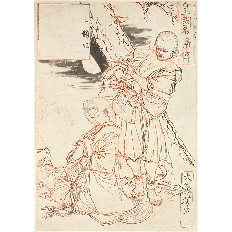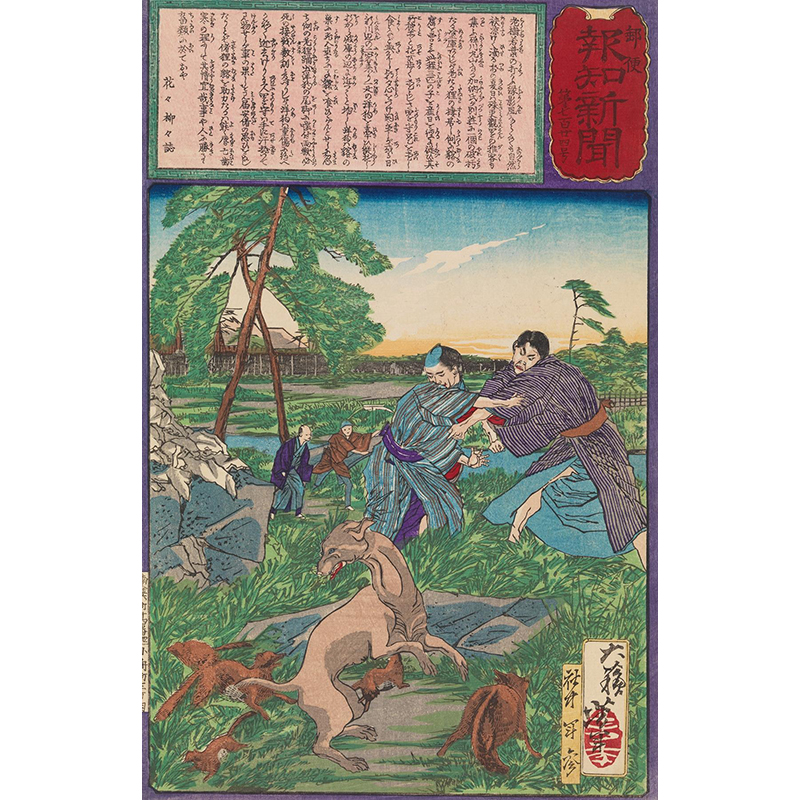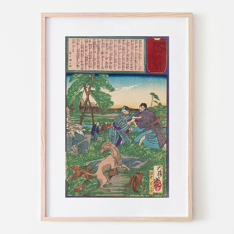 Raccoon Dog Protects Its Cubs from Attack by a Dog (1875) - 月岡芳年