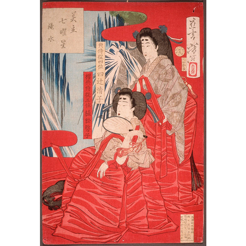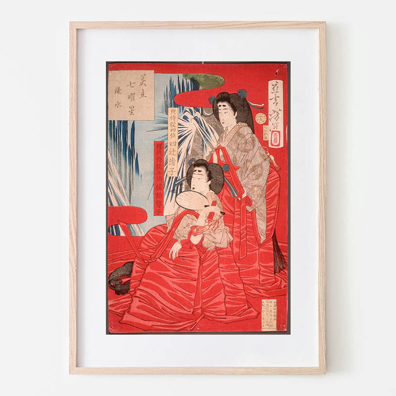 In a Fit of Jealousy Arai Tōkichi Hurls a Rock at Ohana (1875) - 月岡芳年