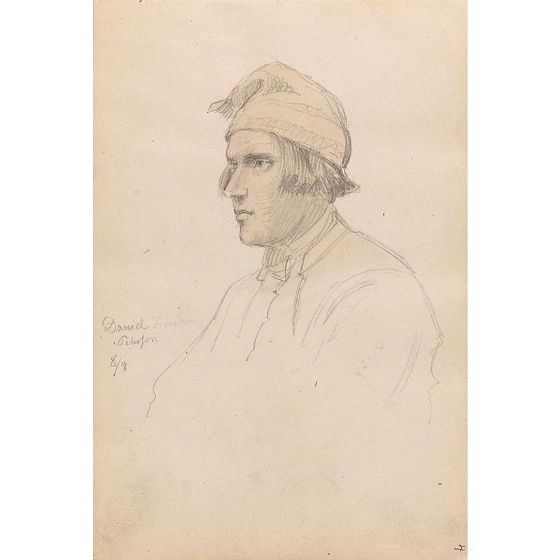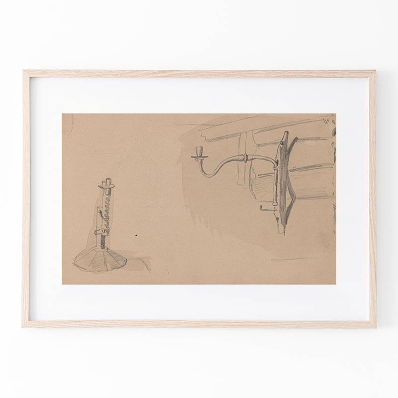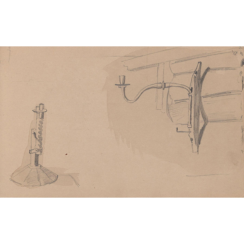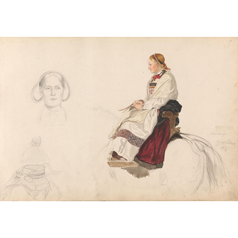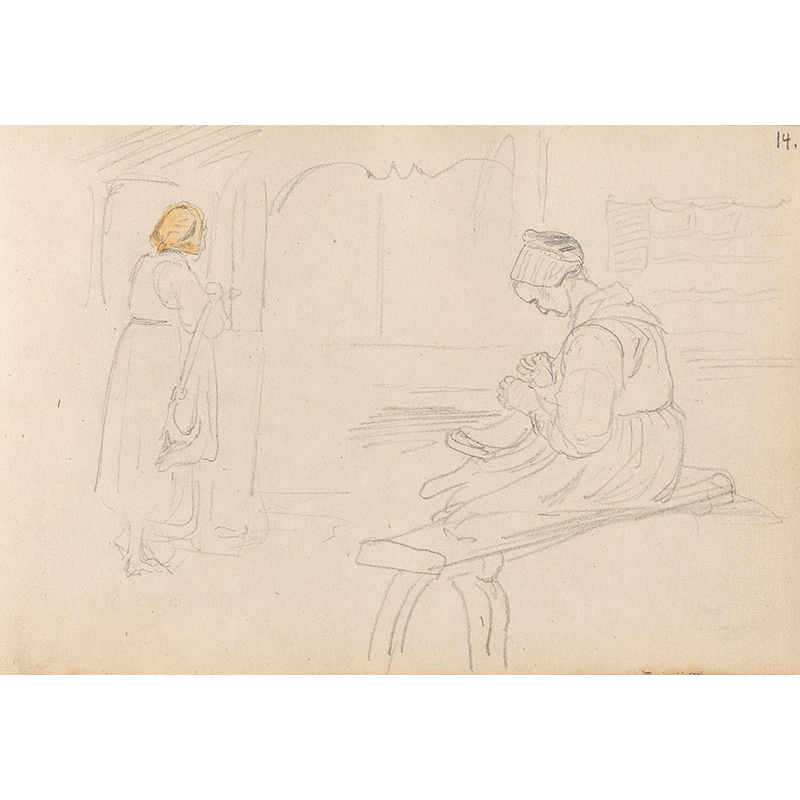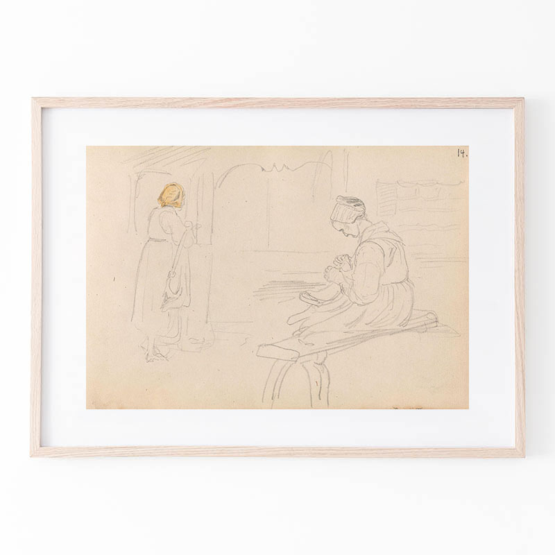 Kvinnefigur ved bygning; kvinne med håndarbeid (1852) - アドルフ・ティーデマン