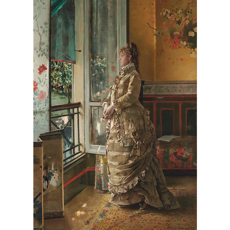 A Standing Young Lady Taking Off Her Gloves (1876 or after) - アルフレッド・ステヴァンス