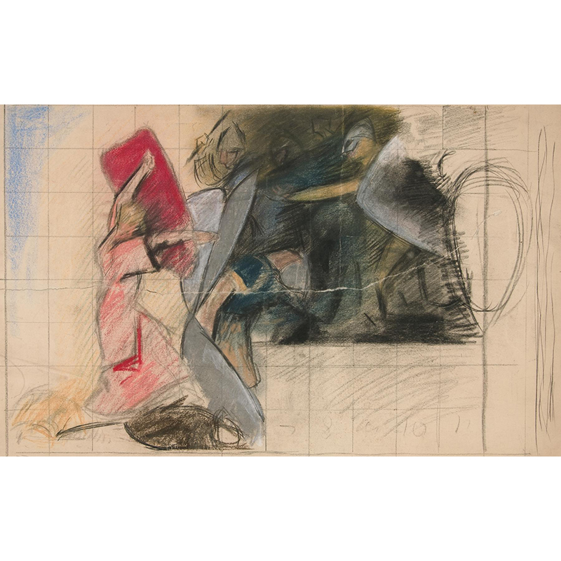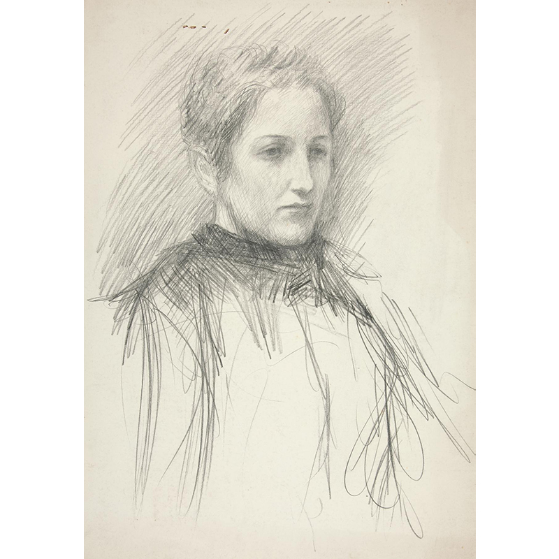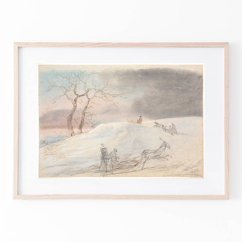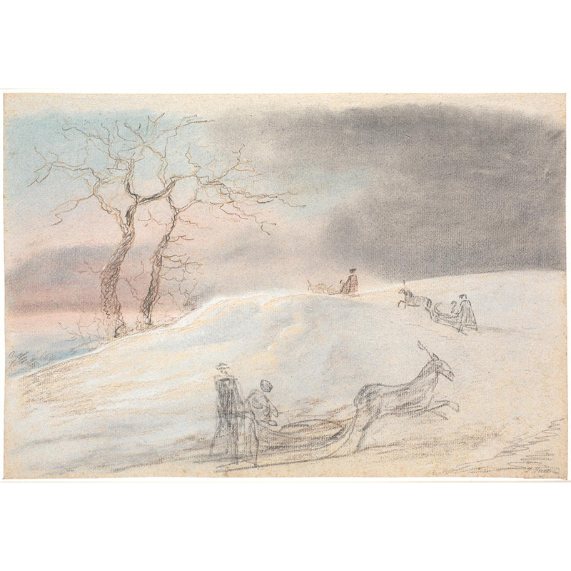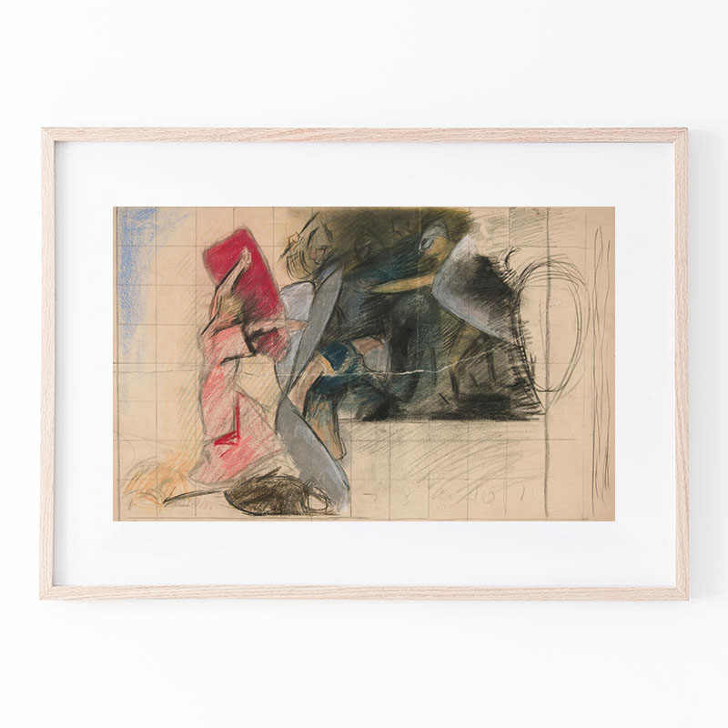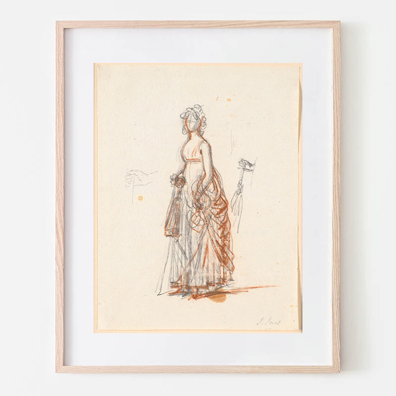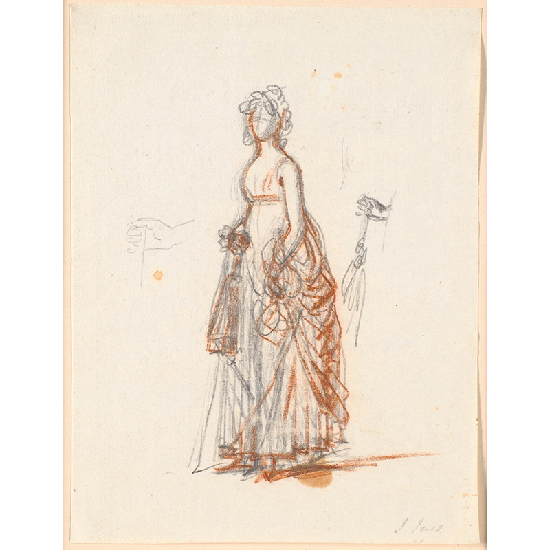 En face, stående på højre ben_mens venstre knæ støtter mod en taburet; ikke tegnet færdig_ (1745 - 1802) - イエンス・ユール