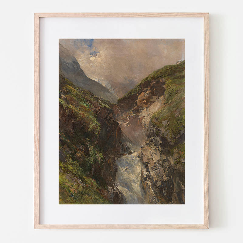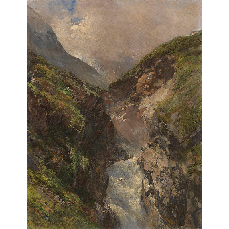 Gebirgsschlucht mit tosendem Wasserfall (1880)