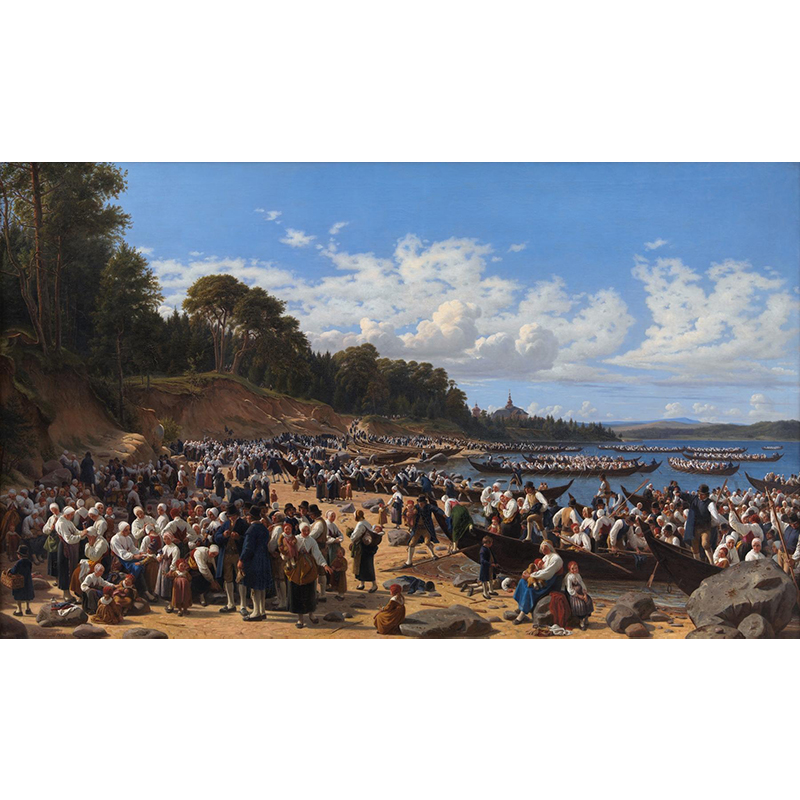 Church-Goers Arriving By Boat At The Parish Church Of Leksand On Siljan Lake, Sweden (1853) - ヴィルヘルム・マーストラン