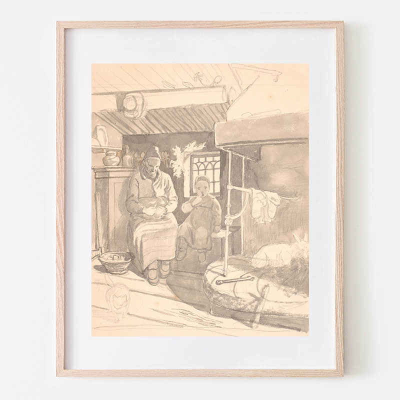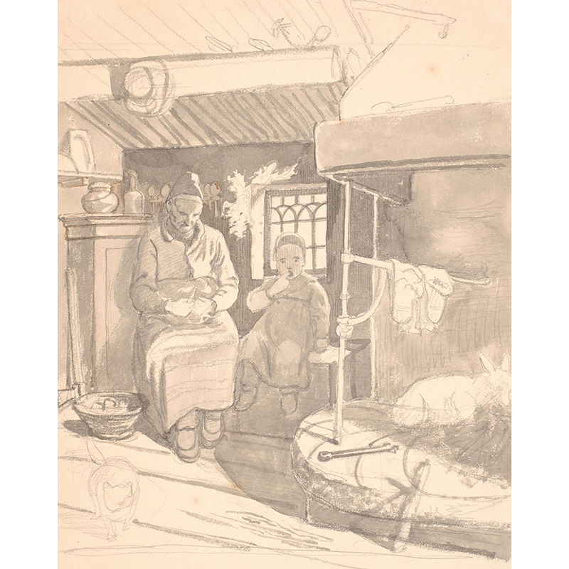 Svensk bondestue med gammel kone og barn (1851) - ヴィルヘルム・マーストラン