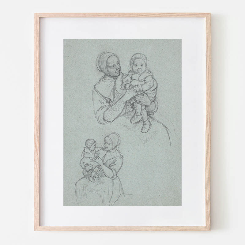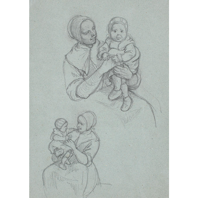 To studier af svensk pige med et barn på skødet (1851)